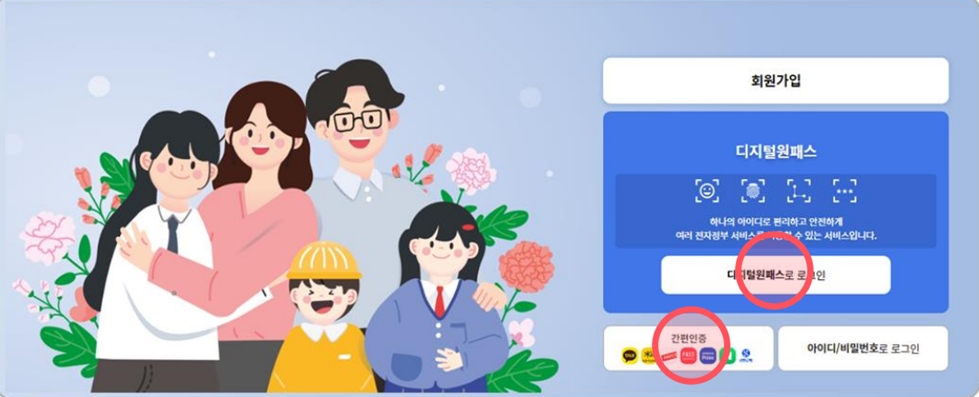 → 관련 법령에 따라 디지털원패스 또는 간편인증한 사용자만 조회가 가능하며, 아래와 같이 간단히 인증 가능합니다.