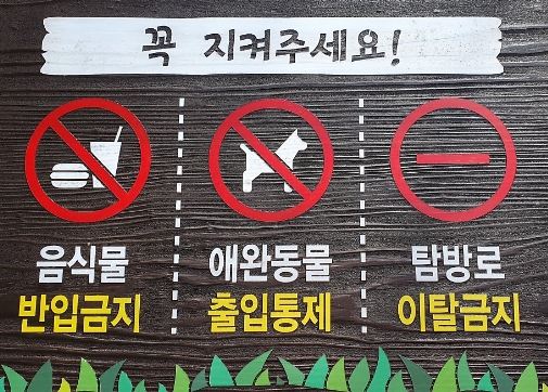 - 음식물의 반입이 금지되고 애완동물 또한 입장 금지