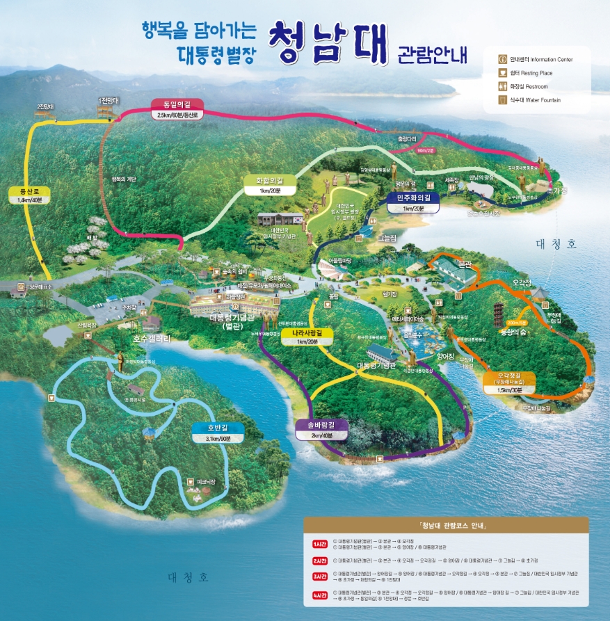 오늘은 청남대에 대해 알아보았다. 역시 대통령 별장답게 넓고 관리가 잘 되는 느낌이다. 청주여행을 계획하는 분들이면 무조건 추천이다. 특히, 요즘같은 가을에는 단풍놀이 하면서 사진찍고 걷기좋은 여행 추천 코스라 생각한다.