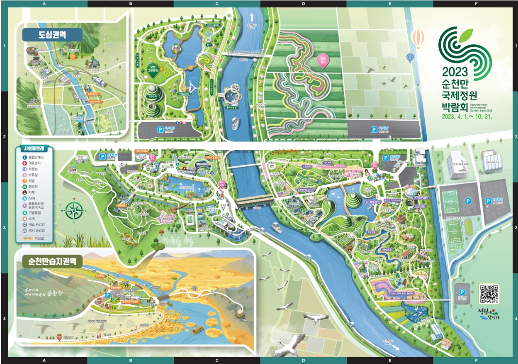 - 순찬만국가정원은 정말 많은 생명이 살아숨쉬는 대자연의 축소판이라고 불리운다. 울창한 숲과 향기로운 꽃, 맑은 물등 자연을 그대로 옮겨놓은 정원이며 국가정원 옆 순천만 습지 또한 갯벌과 갈대밭으로 이루어져 있으며 각종 철새들이 찾아오는 철새들의 서식지이기도 하다. 이번 박람회는 도시전체가 정원이며 대한민국의 생태수도 순천을 나타난다. 이번 박람회의 슬로건은 정원을 통한 삶의 질 향상, 시민이 즐거운 정원도시 완성, 도심전역 생태 정원화를 목표로 하며 진행되고 주소는 '전라남도 순천시 국가정원1호길 47(순천만국제습지센터)' 이며, 문의번호는 '061-749-8000'이다.