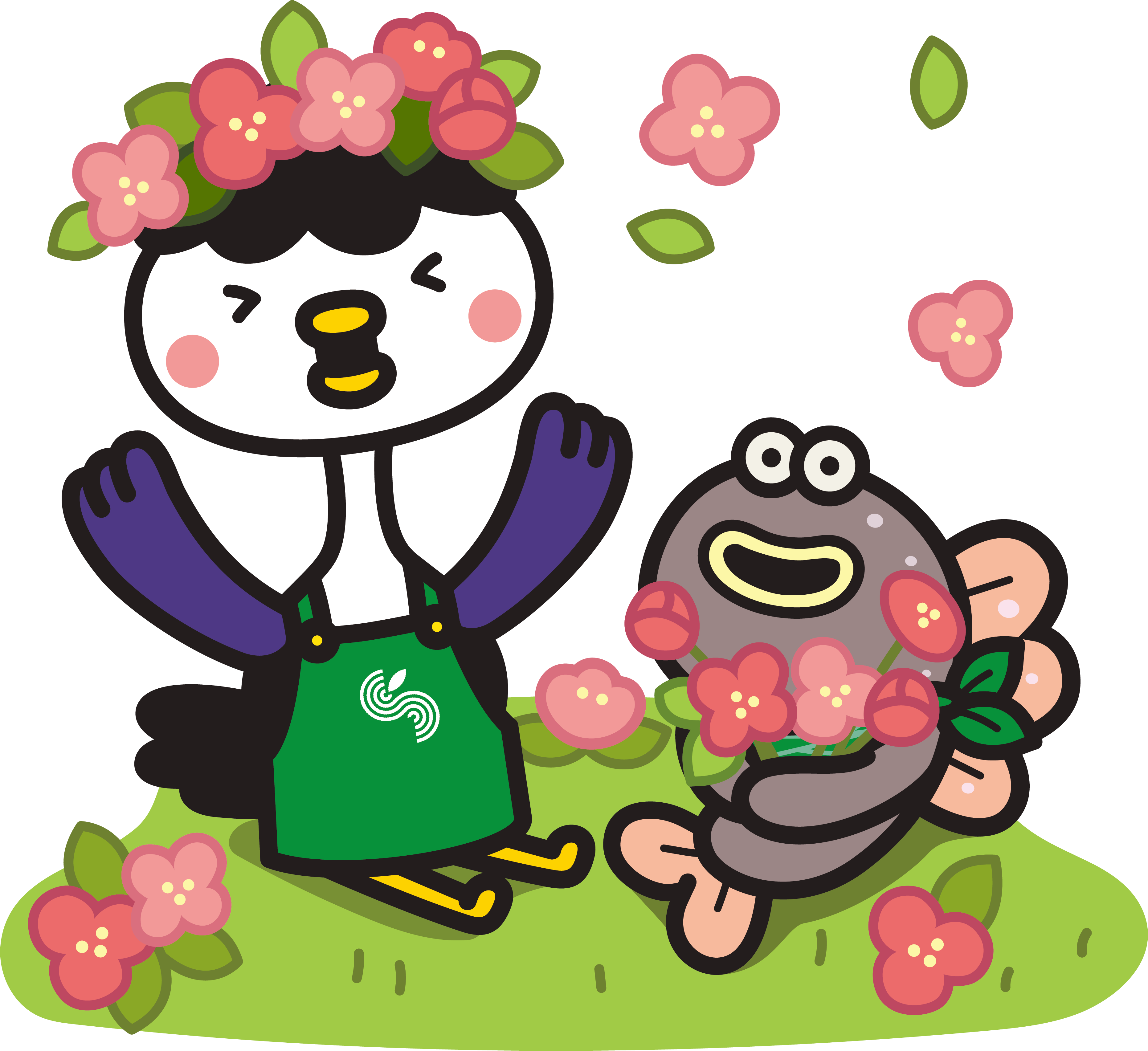 - 순천시의 마스코트이자 시조인 '흑두루미'와 천혜 생태자원인 순천만습지에 자생하는 '짱뚱어'를 캐릭터화함