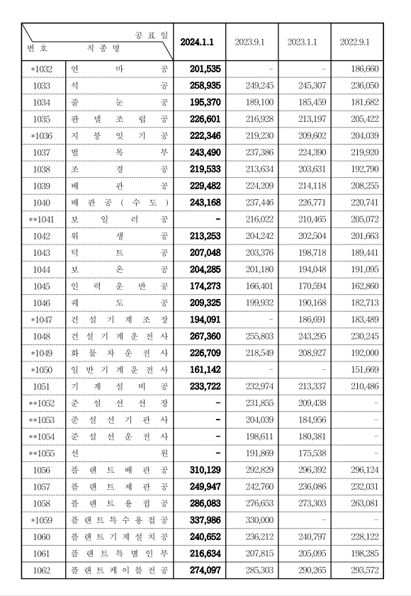 인건비는 해가 지날때마다 오를수밖에 없습니다. 2024년 노임단가는 2023년보다 얼마나 더 올랐는지 한국표준품셈정보원에서 발표한 2024년 노임단가를 아래와 같이 정리하였습니다.