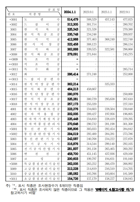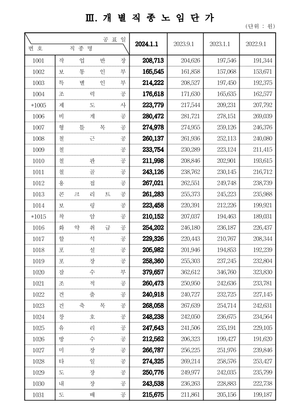 2024년 노임단가의 조사한 기준을 알아보면 아래와 같습니다.