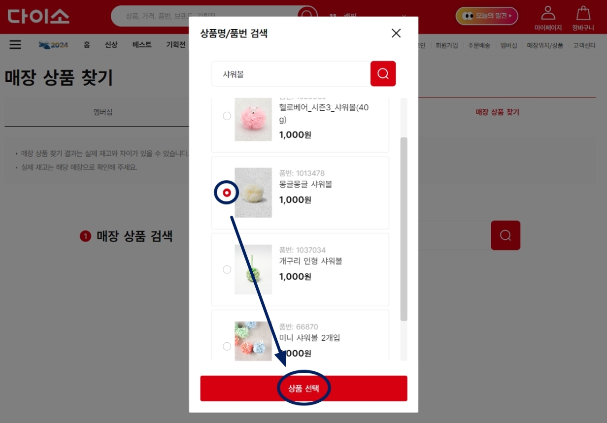 1. 다이소 재고 조회 및 재고 확인 방법(PC)
