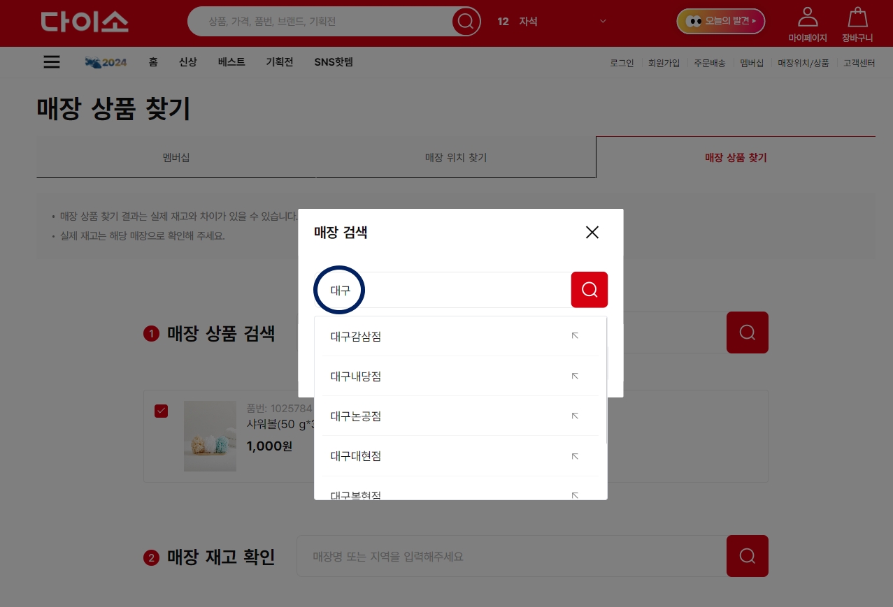 2. 다이소 재고 조회 및 재고 확인 방법(PC)