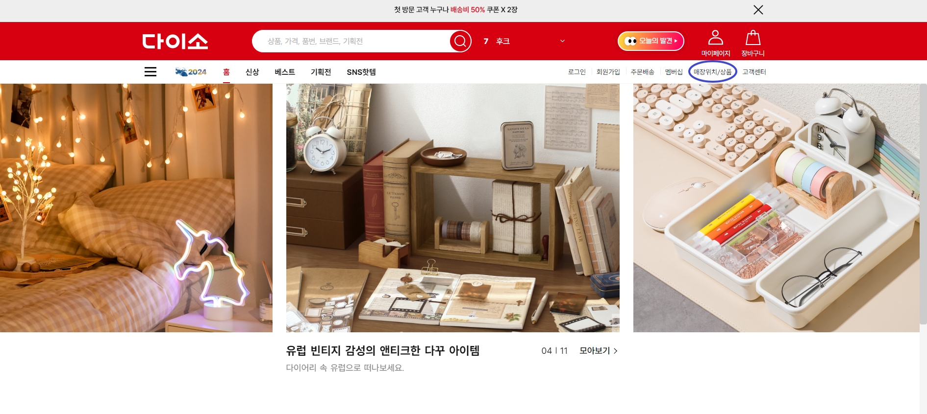 ※ 다이소몰이 전반적으로 빨간색이어서 동그라미 표시를 파란색으로 했습니다.