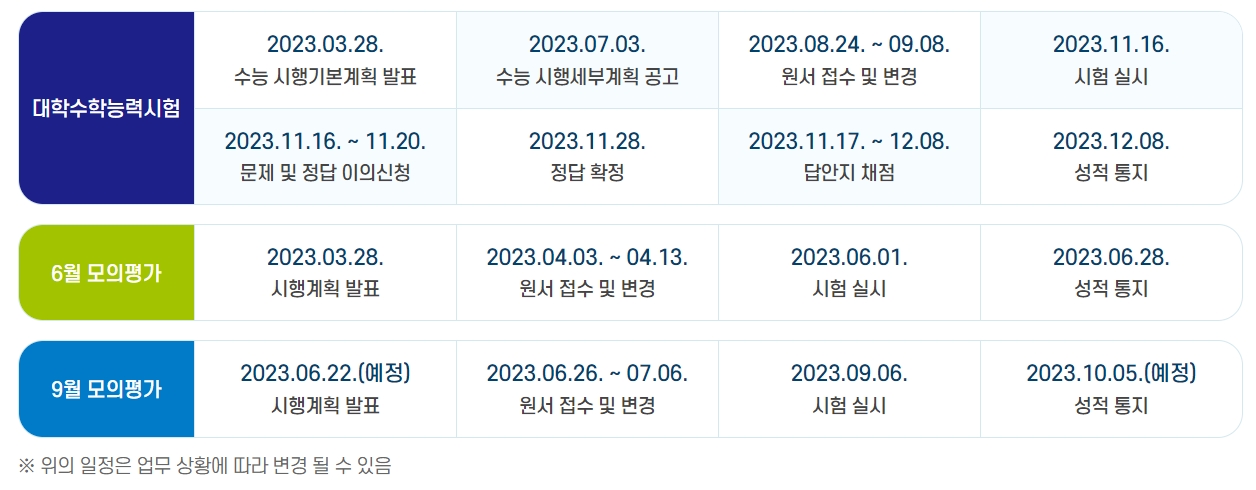 2024년도 수능 및 모의평가 주요 일정