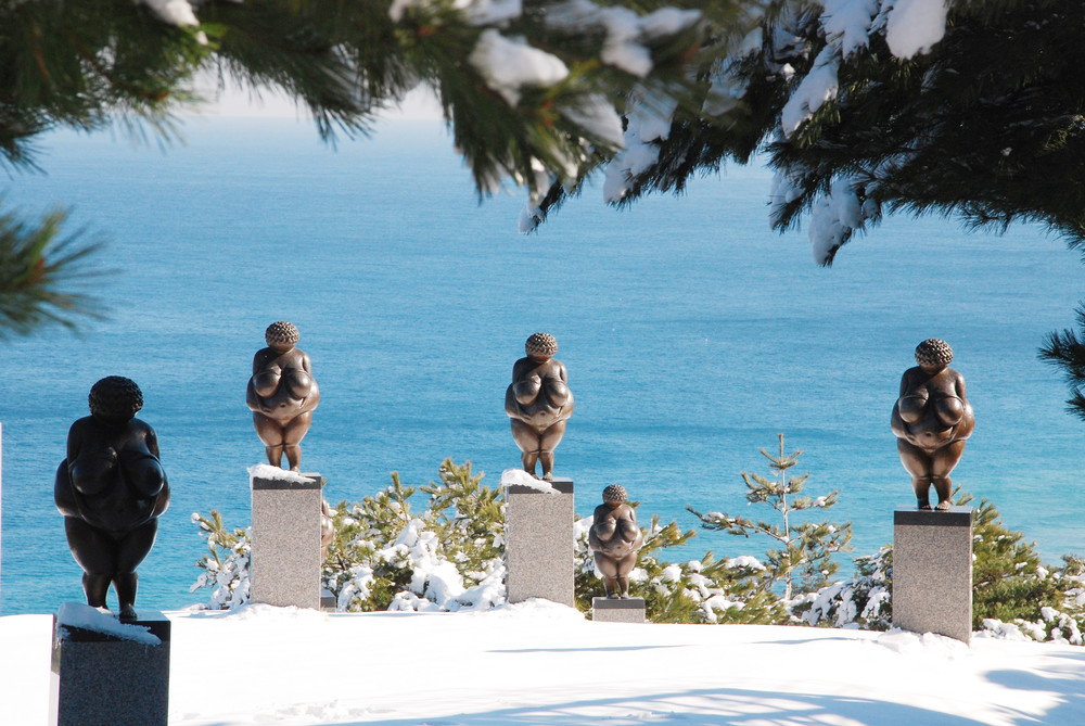- 하슬라 아트월드는 바닷가 절벽에 위치하여 야외정원 또한 그 경치를 빼놓을 수 없다. 3만 3천평의 대지에 다양한 조각작품들과 대지의 미술을 감상할 수 있는 곳으로 인공적인 조각작품들과 자연의 아름다움이 조화되어 더욱 가치가 살아나는 듯하다. 야외 조각공원 구성을 간단히 알아보자.