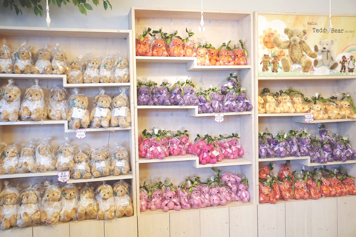 - 베어트리 파크에서는 기념품 판매도 하는데 곰이 있는 곳이어서 그런지 다양한 테디베어 인형들과 계절에 따라 바뀌는 식물, 화초 등을 전문적으로 판매한다.